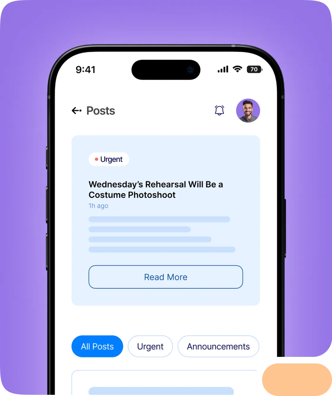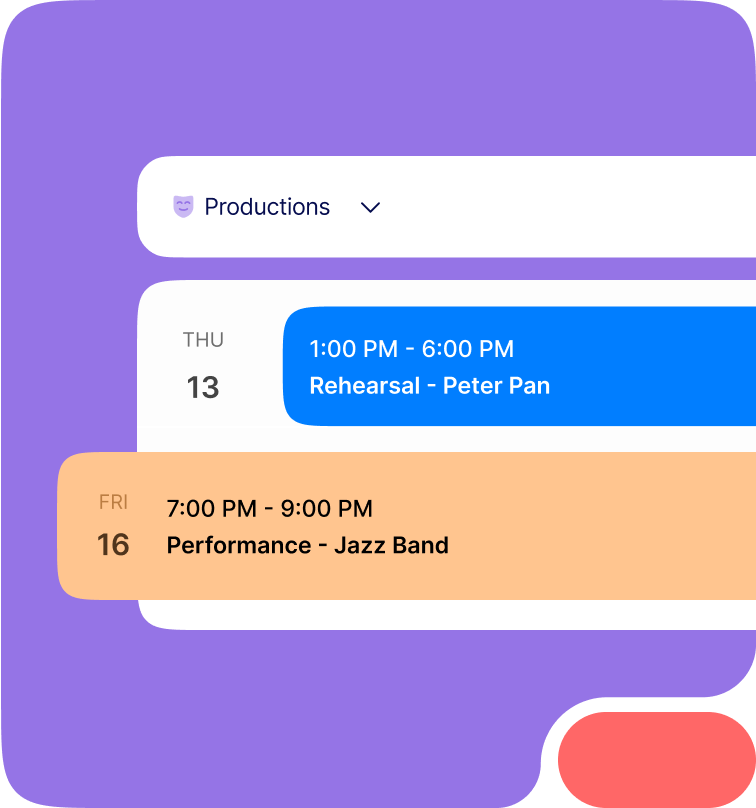 Rehearsals, performances, and conflicts managed seamlessly, even across an entire fine arts department